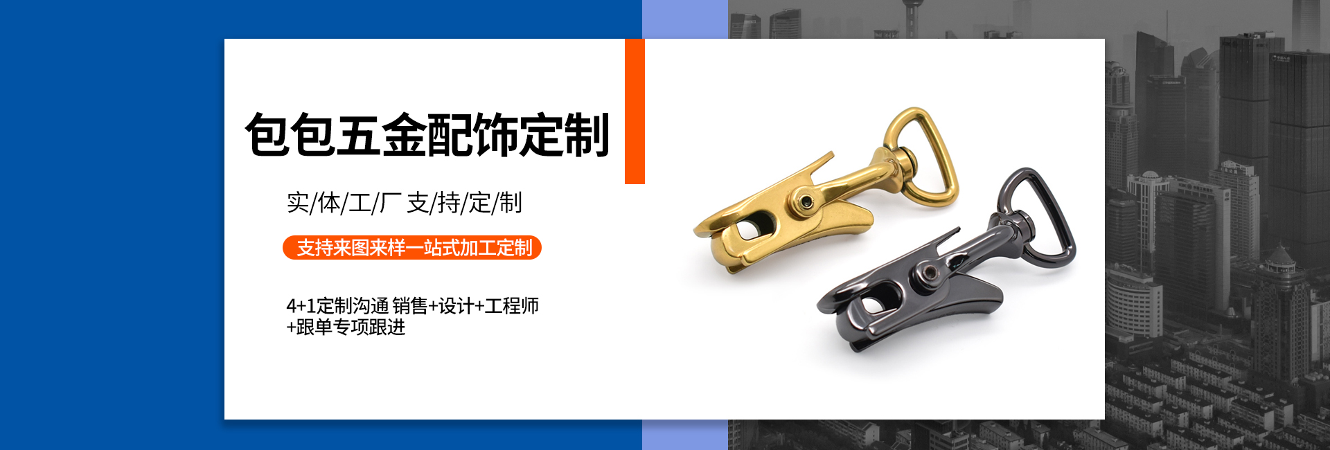 世旺五金是一家專業從事手袋箱包五金配飾定制生產的工廠,始創于2004年,至今19年五金配飾定制經驗,是集研發、設計、制造、電鍍、銷售于一身的企業,擁有14000多平的生產基地,全自動化生產能力,自有模具制造車間和電鍍工廠,日產能20多萬件,還有強大的技術團隊和高效的銷售網絡。我們以市場需求為導向,不斷探索和創新,在產品品質和性能上達到領先水平。 我們的產品包括各類五金制品,如高端皮具手袋、消費電子、禮品/工藝品包裝、寵物穿戴、汽車裝飾等領域五金配飾,應用廣泛,覆蓋行業多。 以客戶需求為中心,為客戶提供全方位的一站式服務,包括售前咨詢,生產跟進,售后服務等等。提供保姆式顧問式服務,與品牌商、手袋廠等共同打造好產品,好IP。